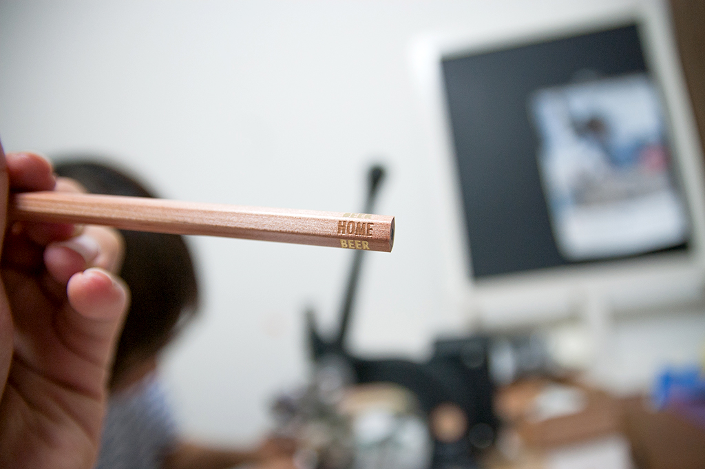 最終的には、名前+記号を1面・BEERを4面・HOMEを1面の合計6面×100本、そして時間があればお箸にも…(゜o゜;;